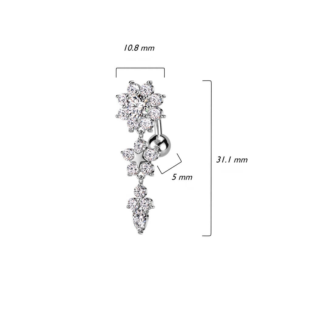 Bauchnabelpiercing Top Down Blumen Zirkonia