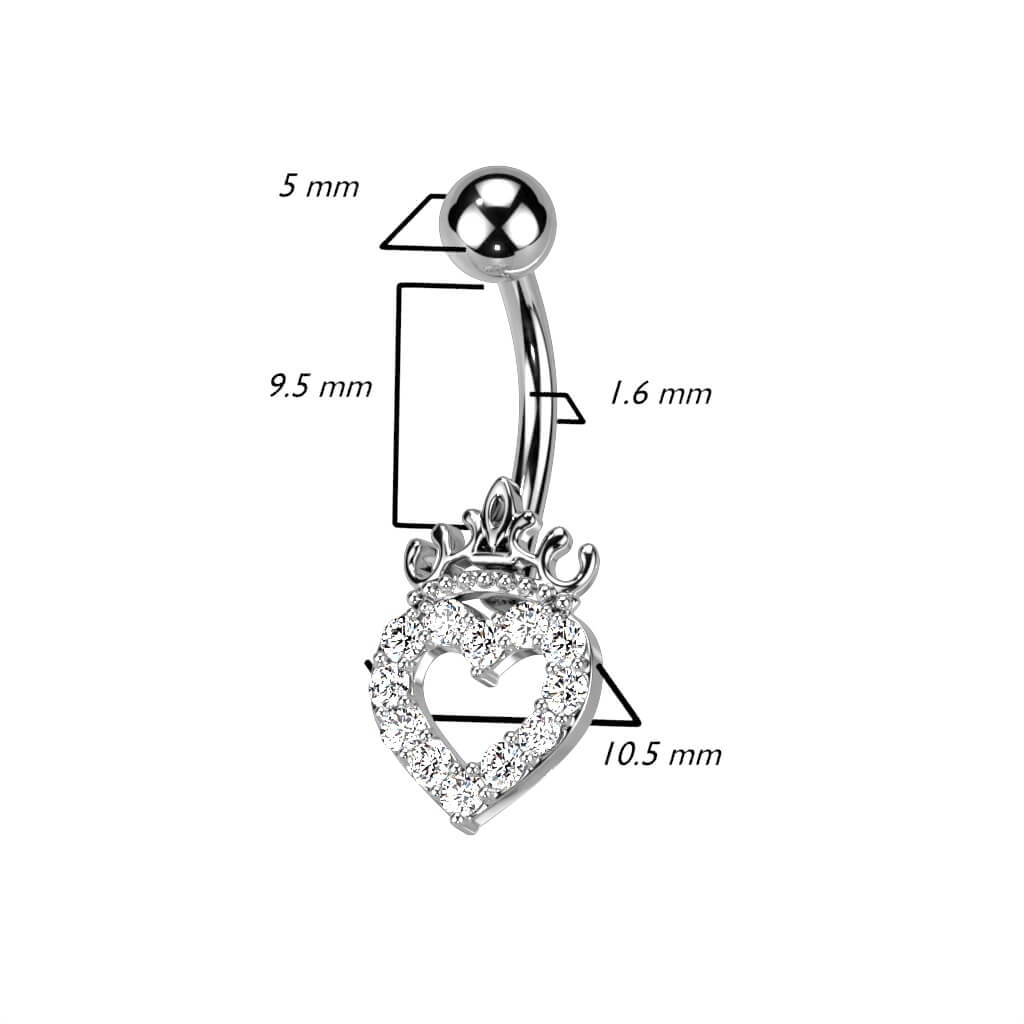 Bauchnabelpiercing Herz Krone Zirkonia