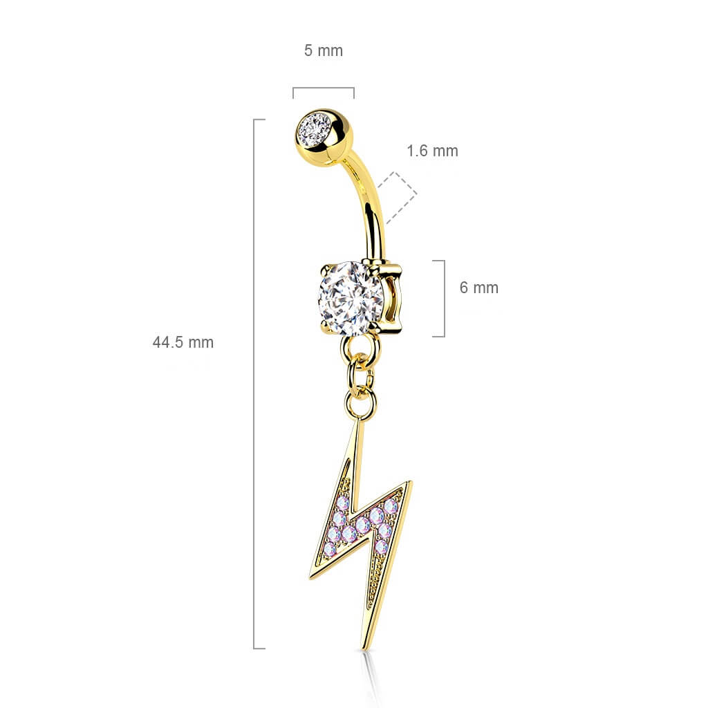 Belly Button Piercing Lightning Bolt dangle cubic Zirconia