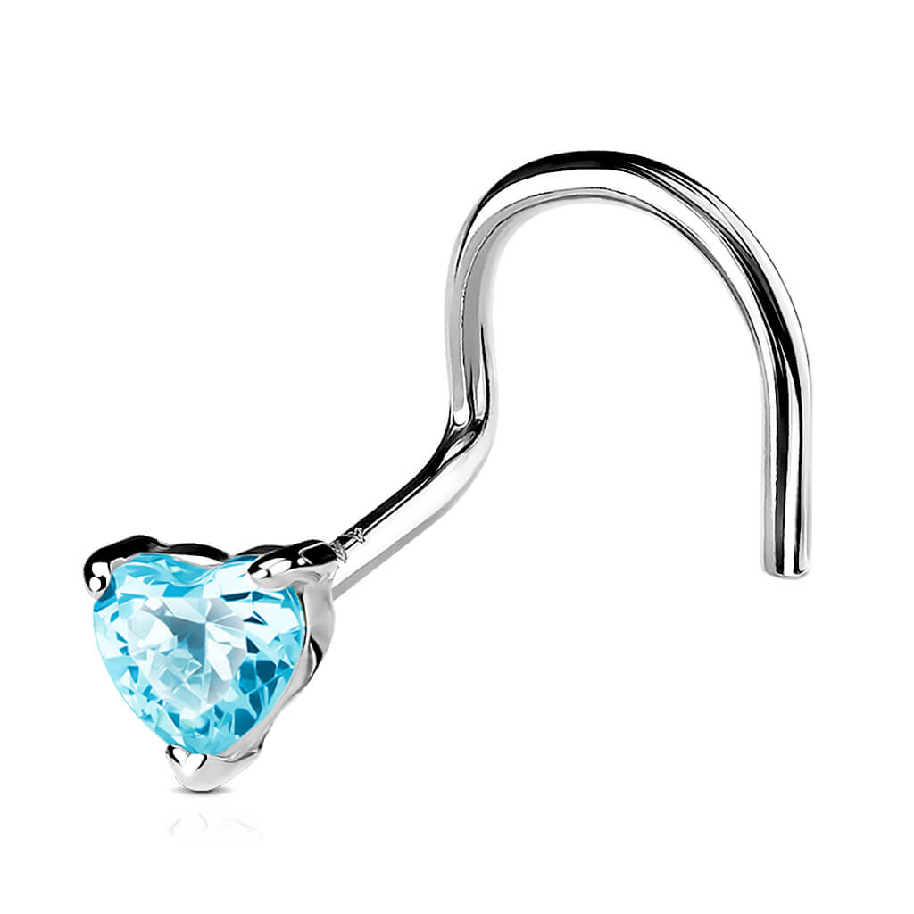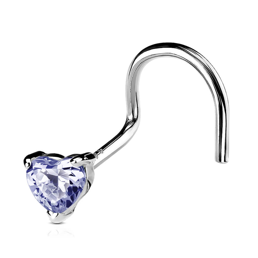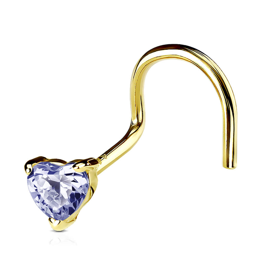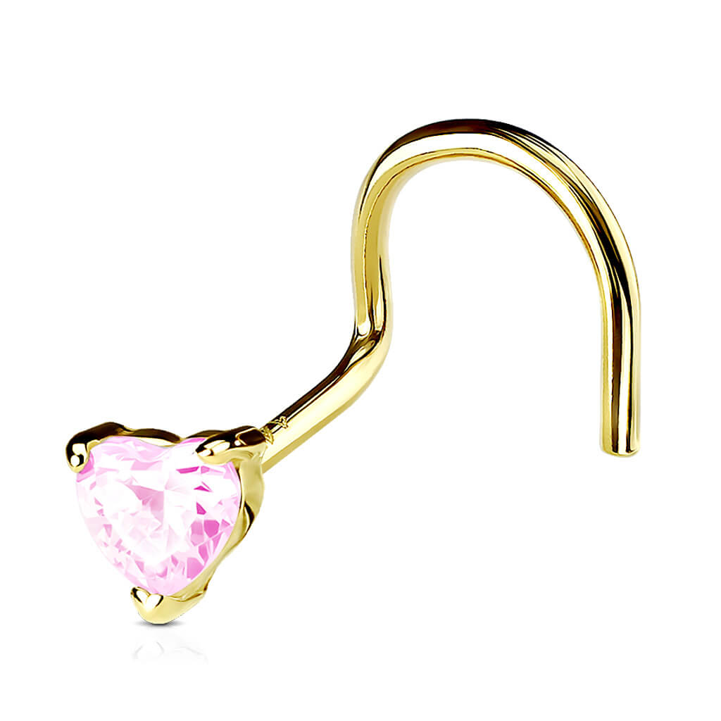 Solid Gold 14 Carat Nose Screw Heart Zirconia