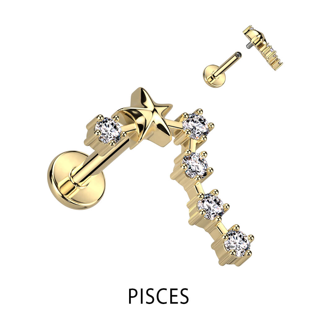 Labret Zodiac sign Zirconia Gold Internally Threaded