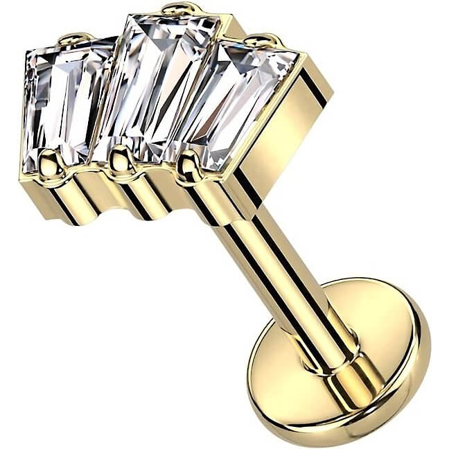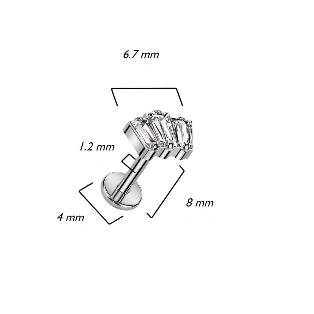 Titanium Labret Baguette Zirconia Opal Internally Threaded