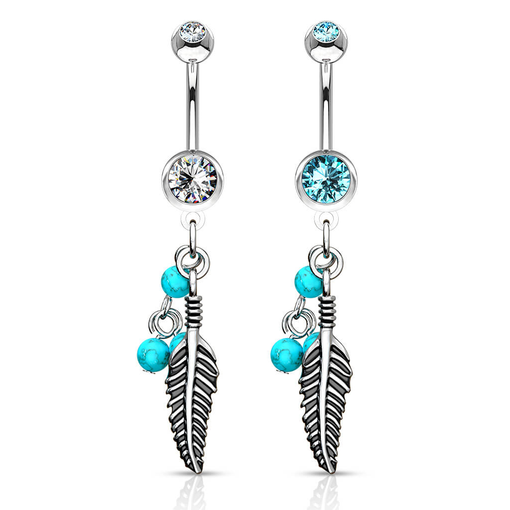 Piercing ombligo Pluma turquesa Piedra semipreciosa colgante Circonita Plata