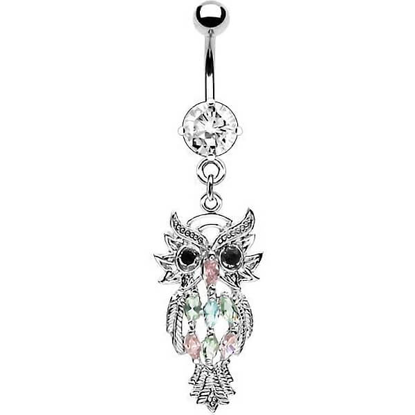 Piercing ombligo Búho colgante Circonita Plata