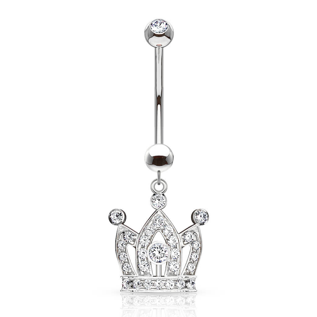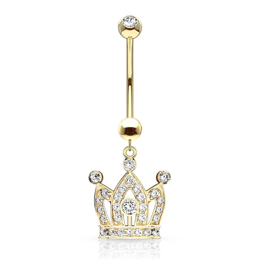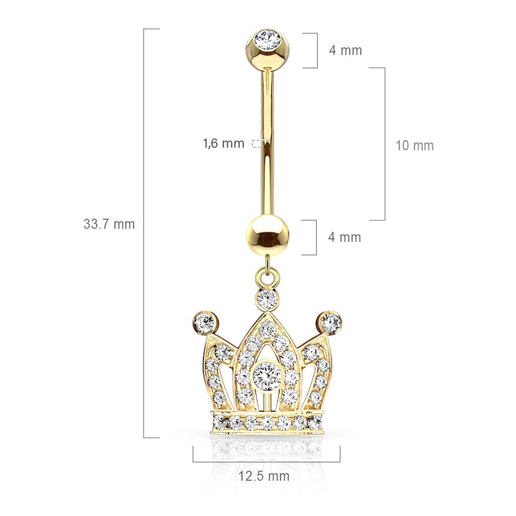 Oro 14kt Piercing ombligo Corona cúbica colgante Circonita