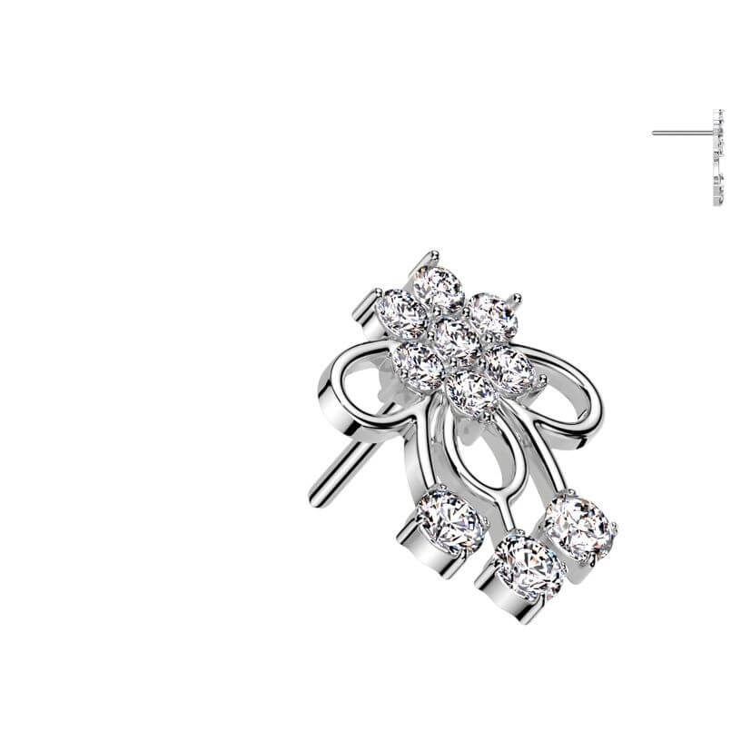 Solid Gold 14 Carat top Flower Ribbon zirconia Push-In