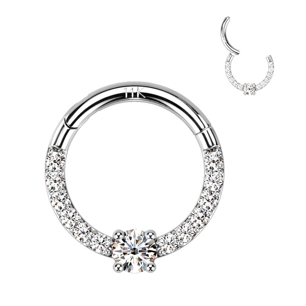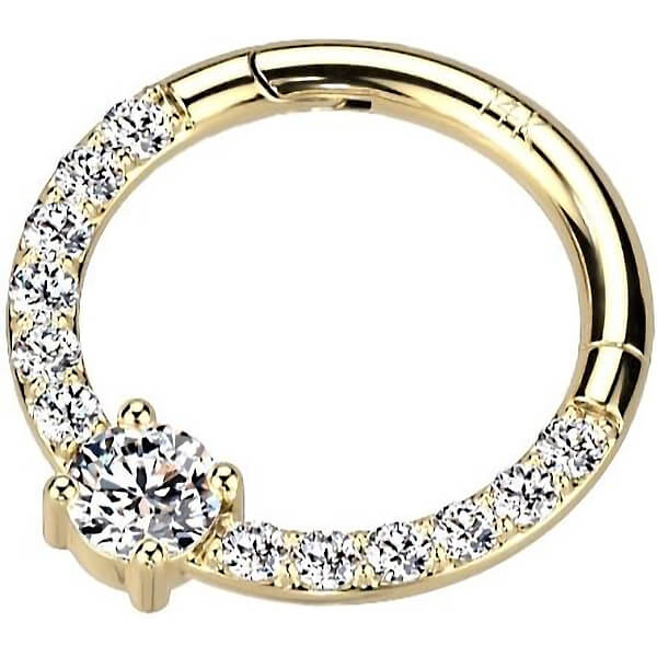 Oro 14kt Anillo Circonita cuadrada Clicker