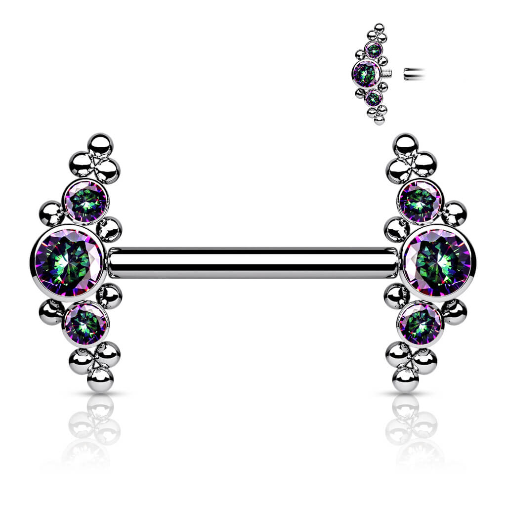 Titanio 3 Circonita Racimo Plata Rosca interna Pezón