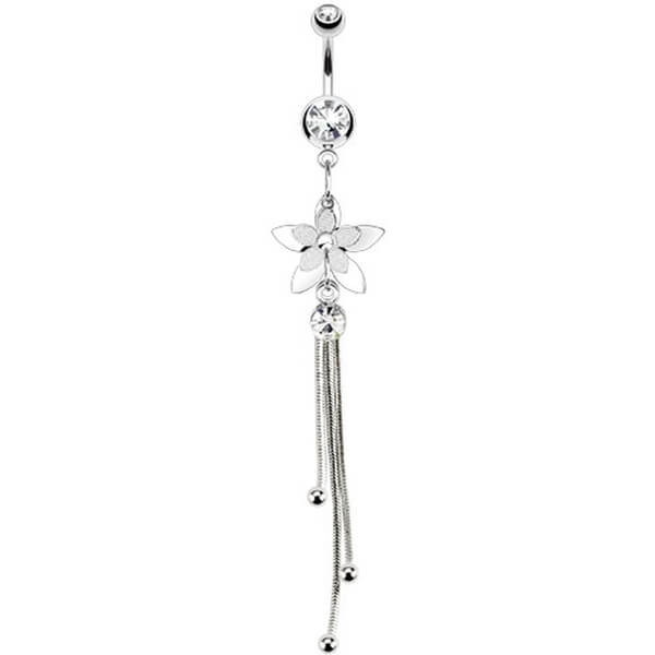 Piercing Ombelico Pendente a fiore in zircone e argento