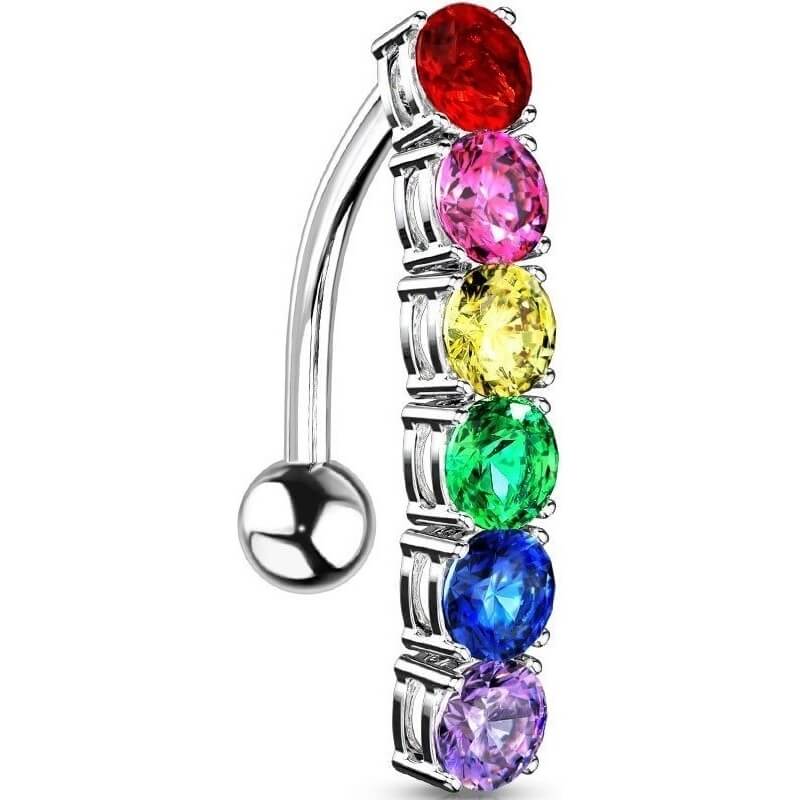 Piercing Ombelico Top Down Arcobaleno in zirconi e argento