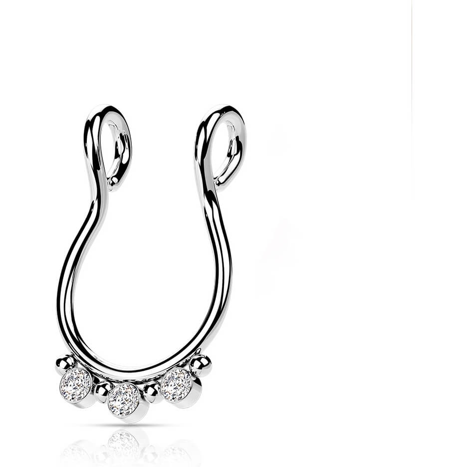 Finto al Naso Septum piatto con 3 zirconi Pieghevole