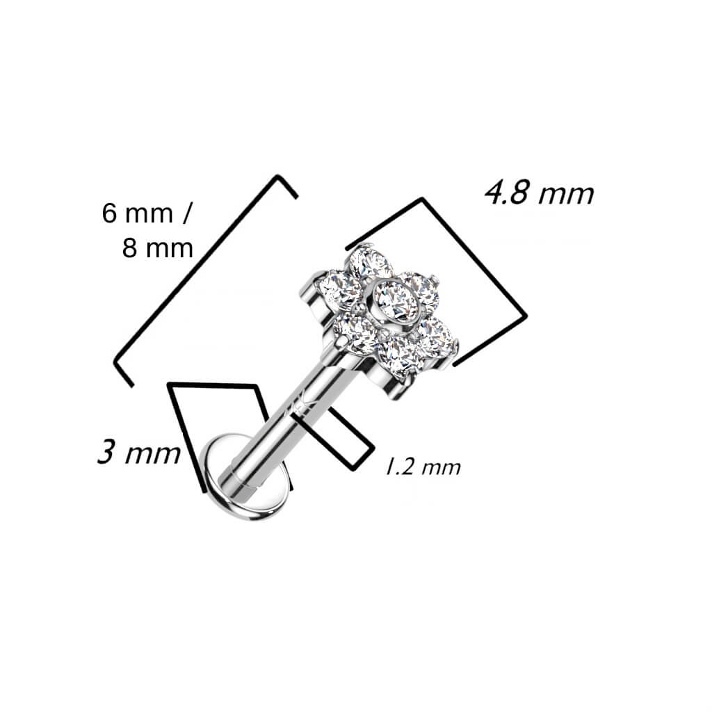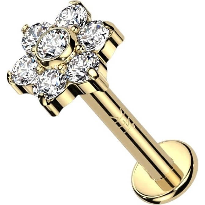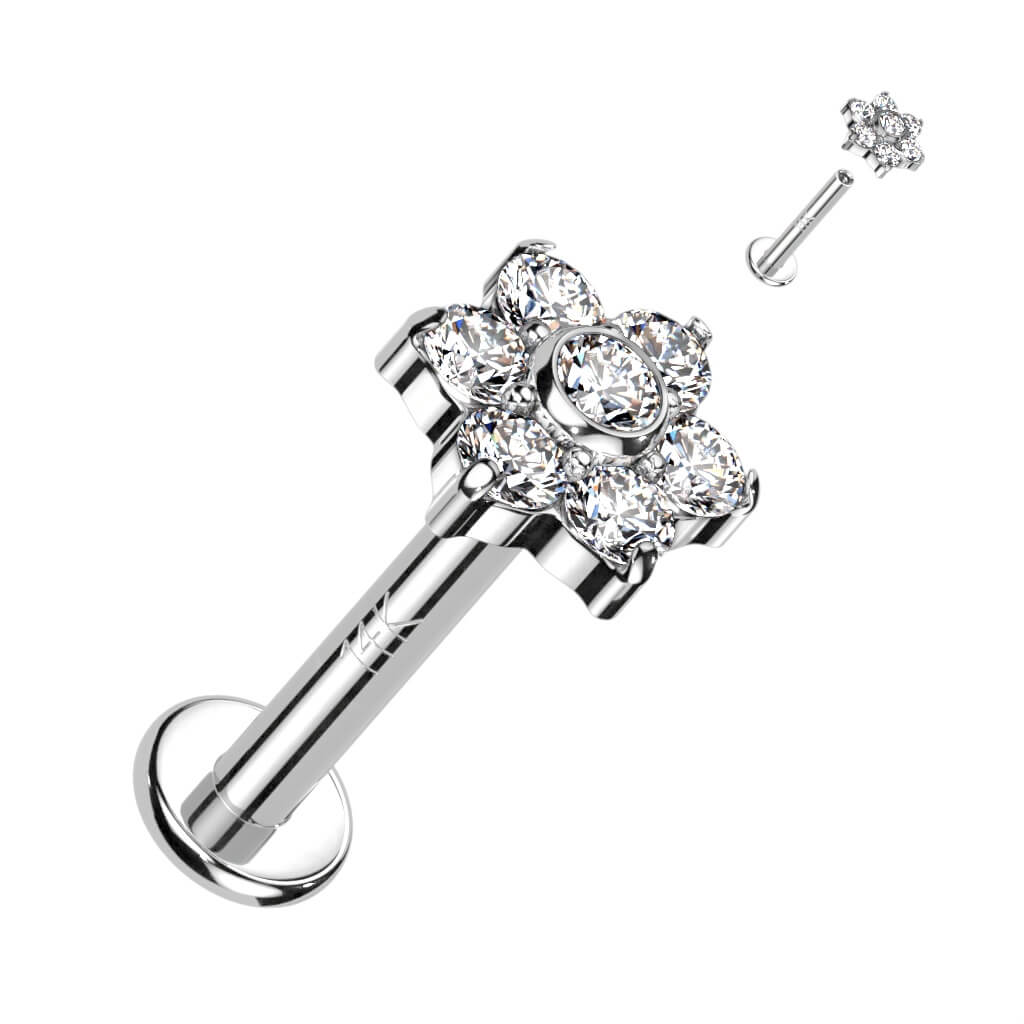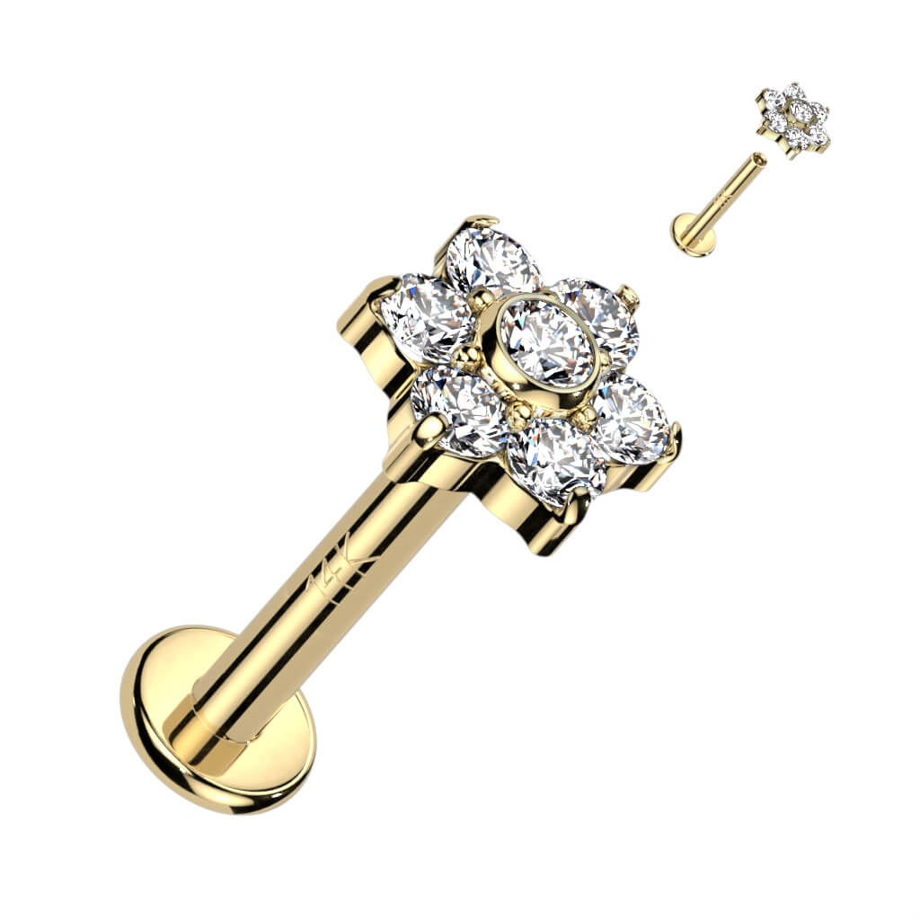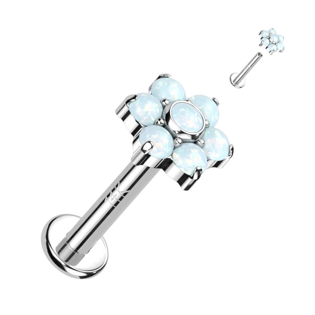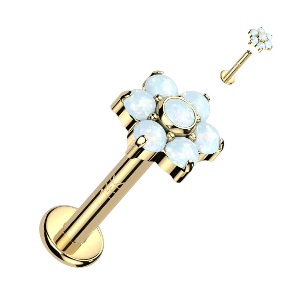 Oro 14 kt Labret Fiore di zirconi/opali Filettatura Interna