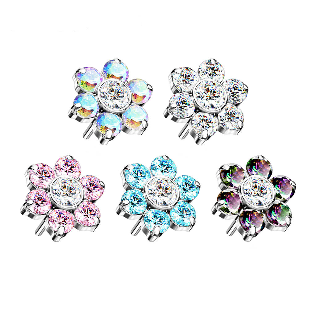 Titanio Superiore a fiore di zirconi e argento Push-In