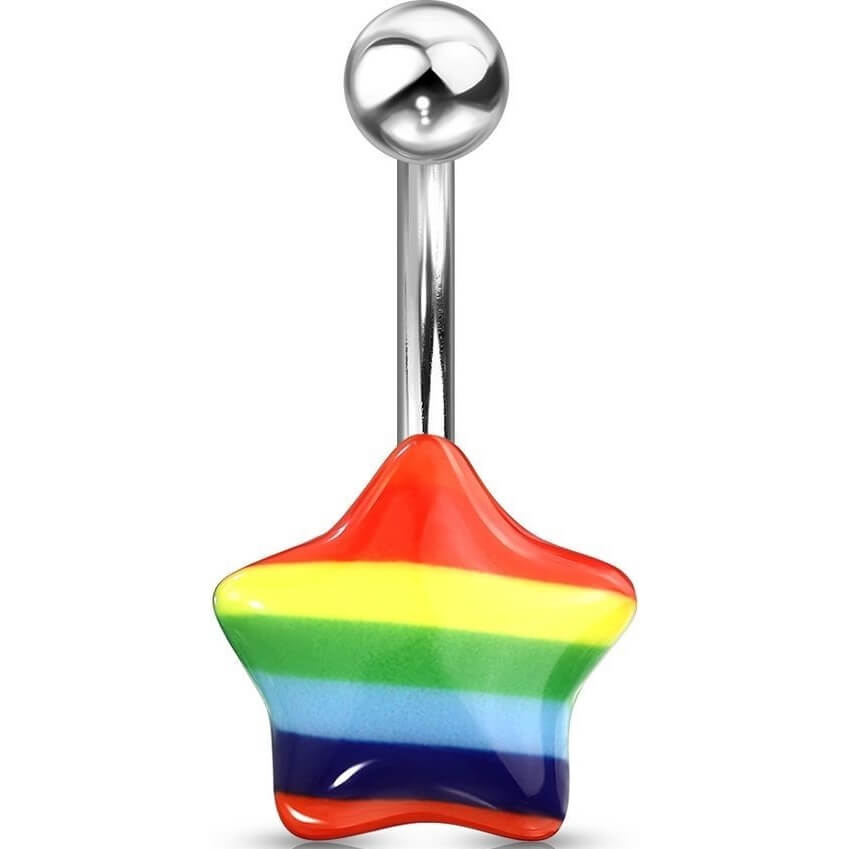 Kolczyk do pępka gwiazdka tęcza srebrny