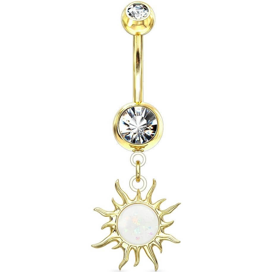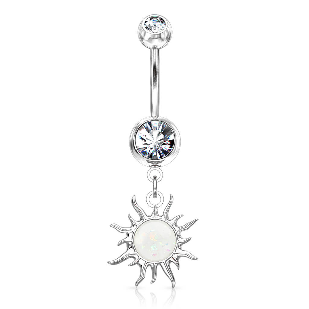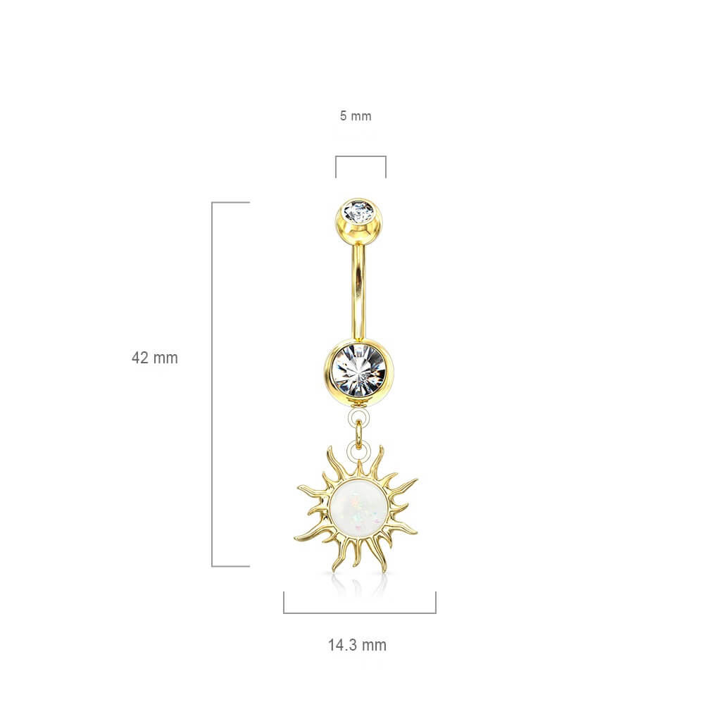 Kolczyk do pępka tribal słońce zawieszka opal cyrkonia