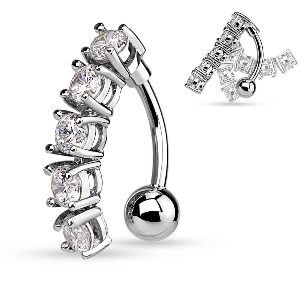 Kolczyk do pępka 5 kolorowych cyrkonii