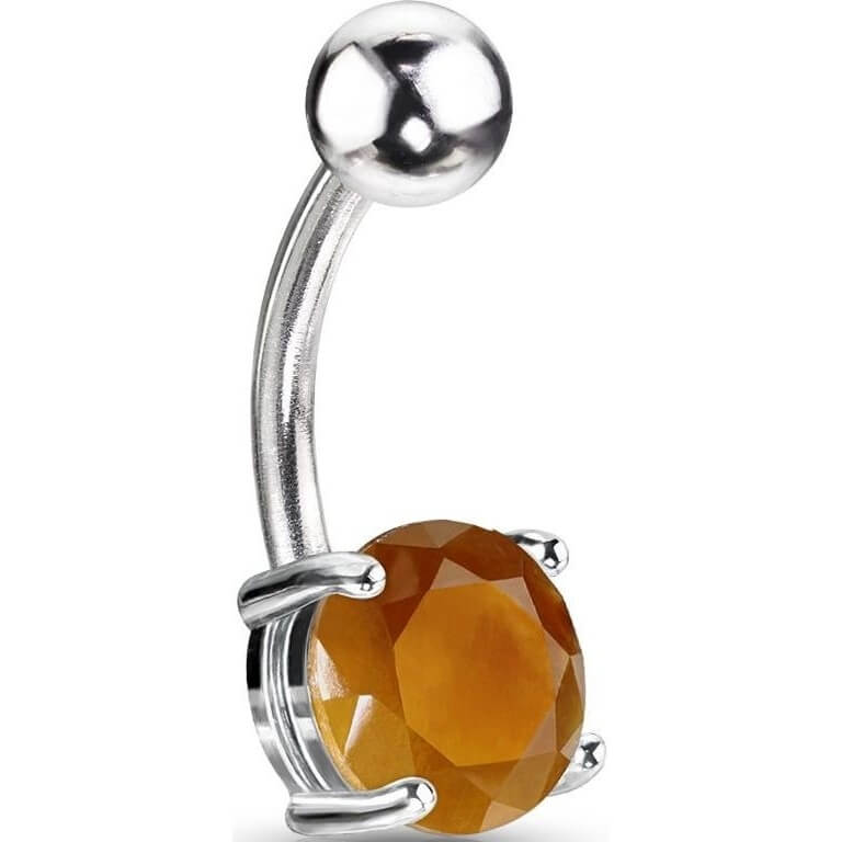 Kolczyk do pępka okrągły kamień półszlachetny tygrysie oko
