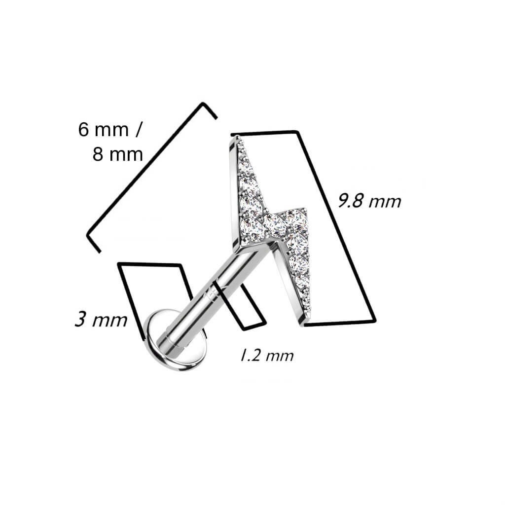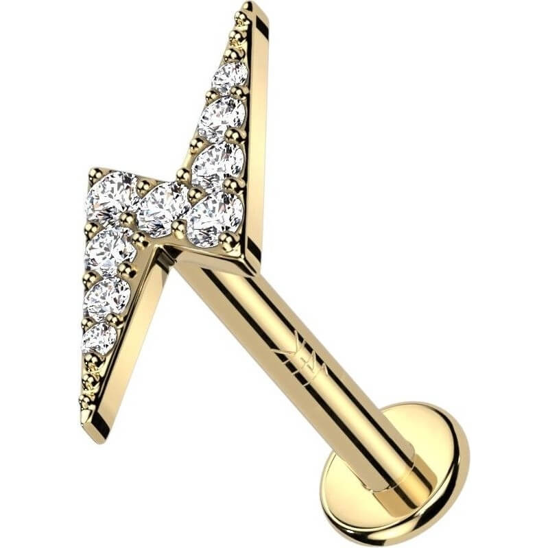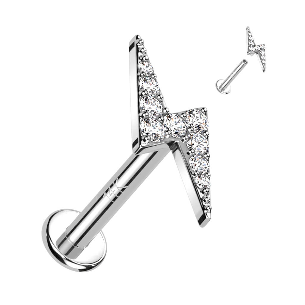 Złoto 585 labret piorun cyrkonia gwint wewnętrzny