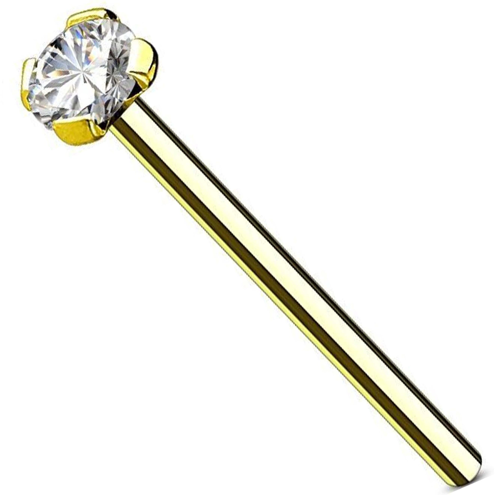 Złoto 585 kolczyk do nosa fishtail okrągła cyrkonia