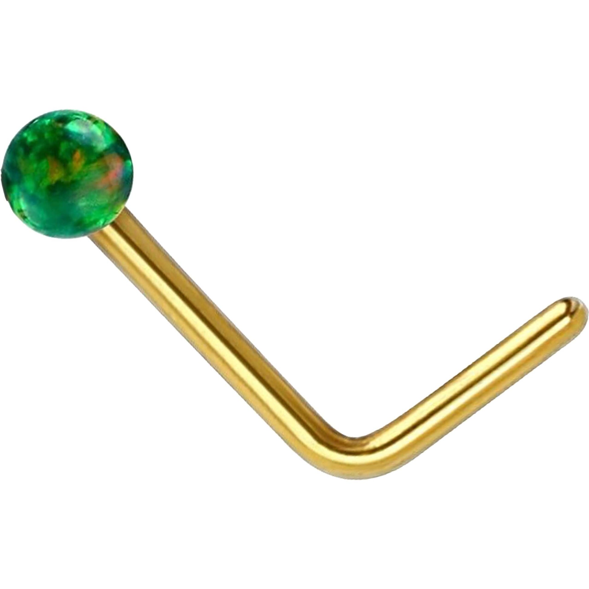 Złoto 585 kolczyk do nosa w kształcie litery l kulka opal