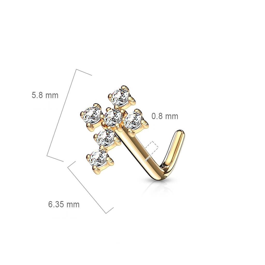 Złoto 585 kolczyk do nosa w kształcie litery l krzyż cyrkonia