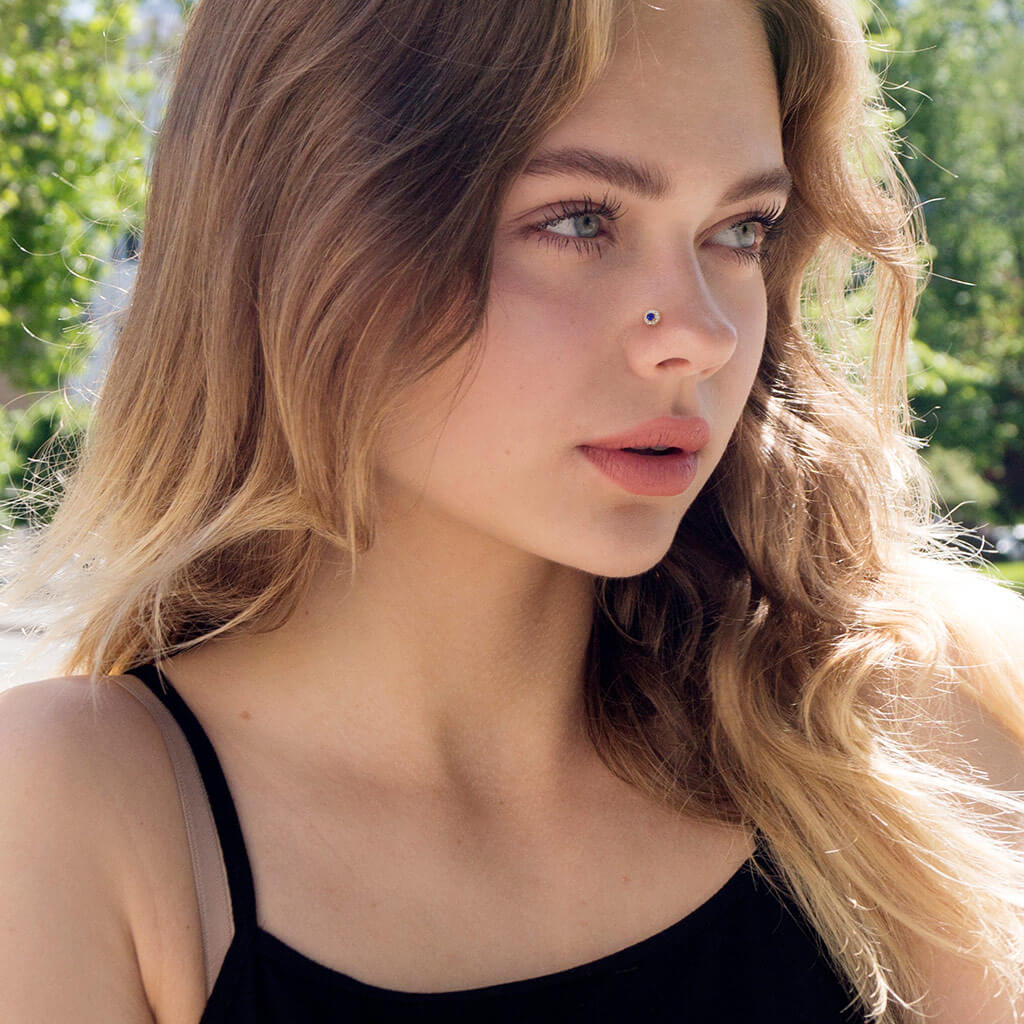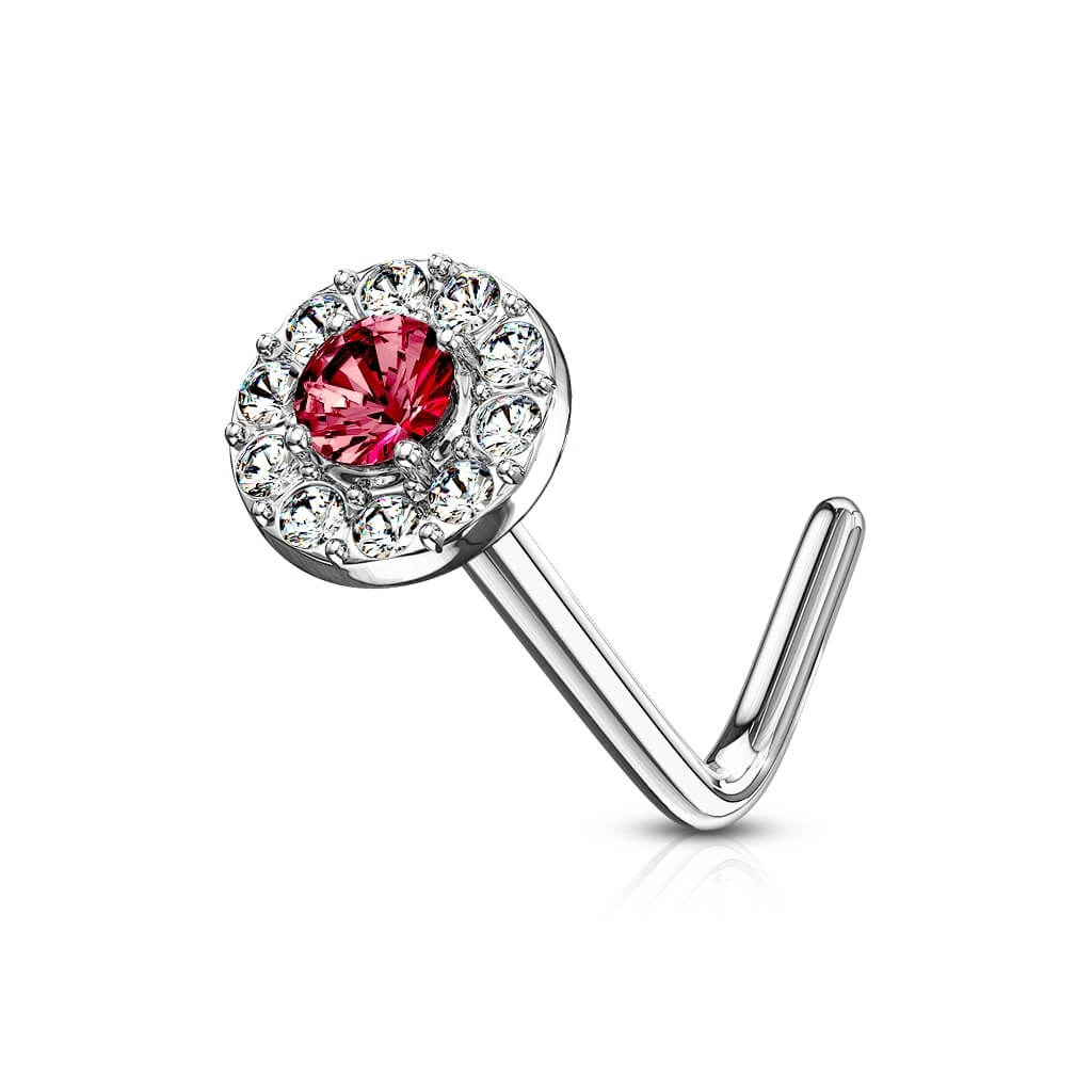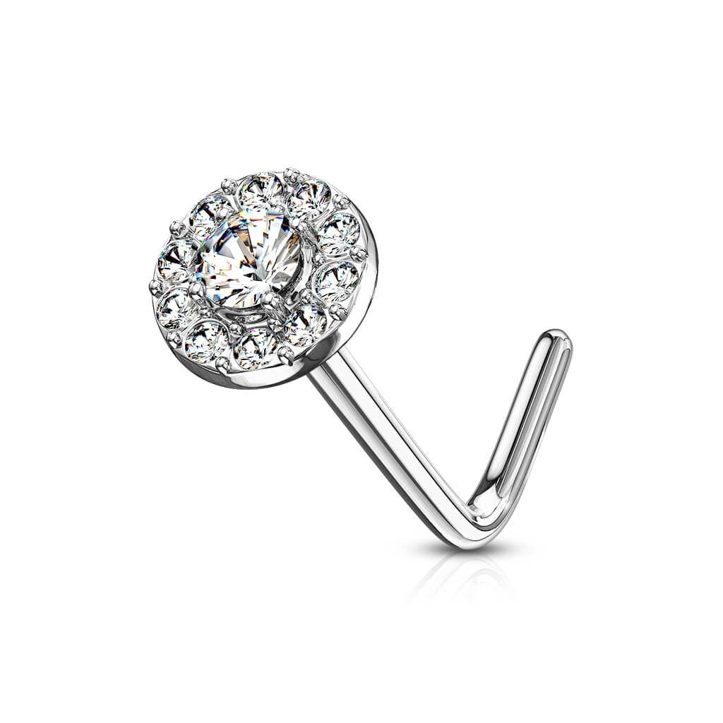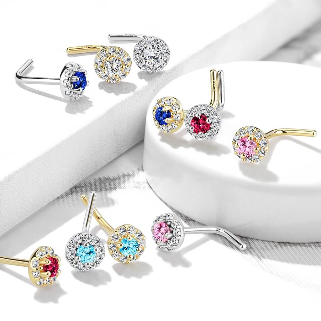 Złoto 585 kolczyk do nosa w kształcie litery l okrągła cyrkonia