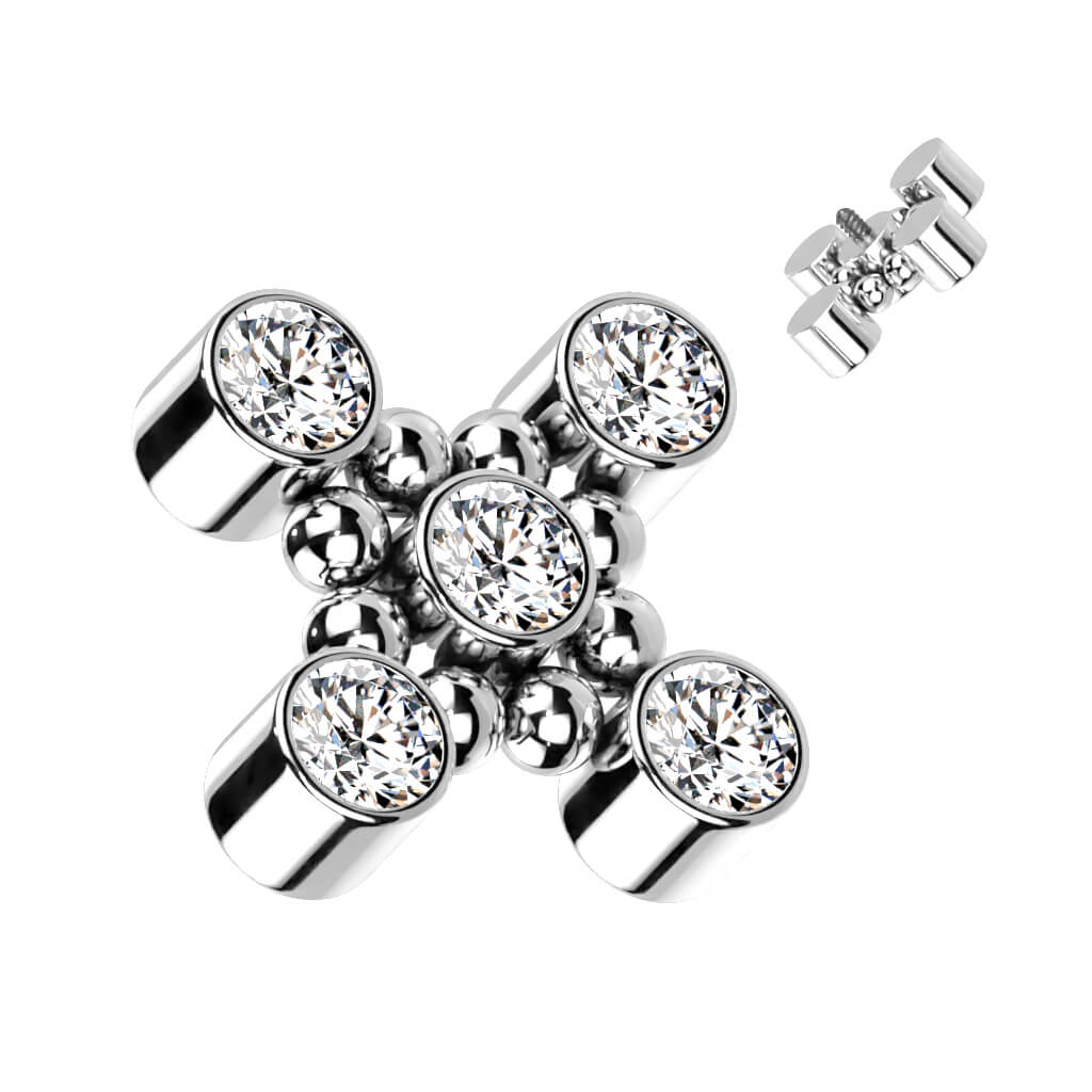 Tytan nakrętka krzyż cyrkonie kuleczki gwint wewnętrzny