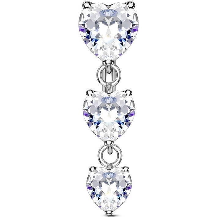 Piercing Nombril Pendentif 3 Cœurs Zircone Inversé