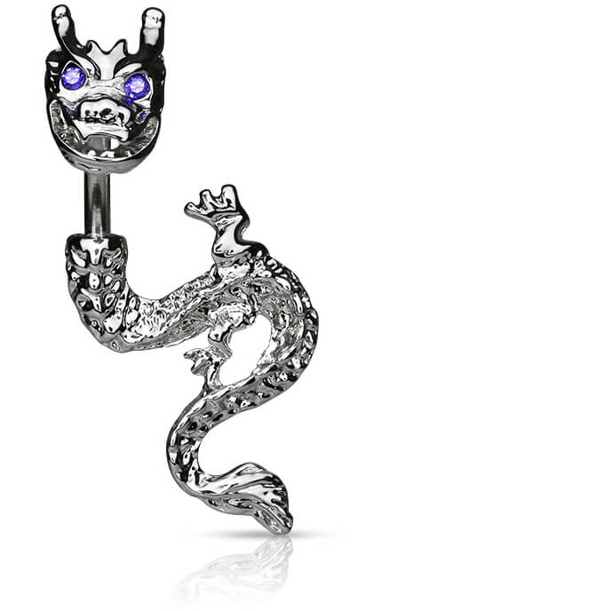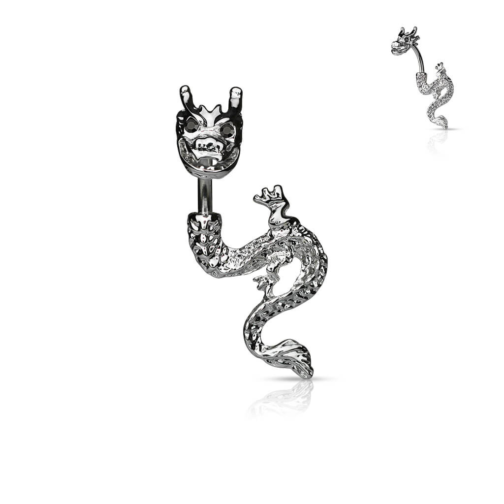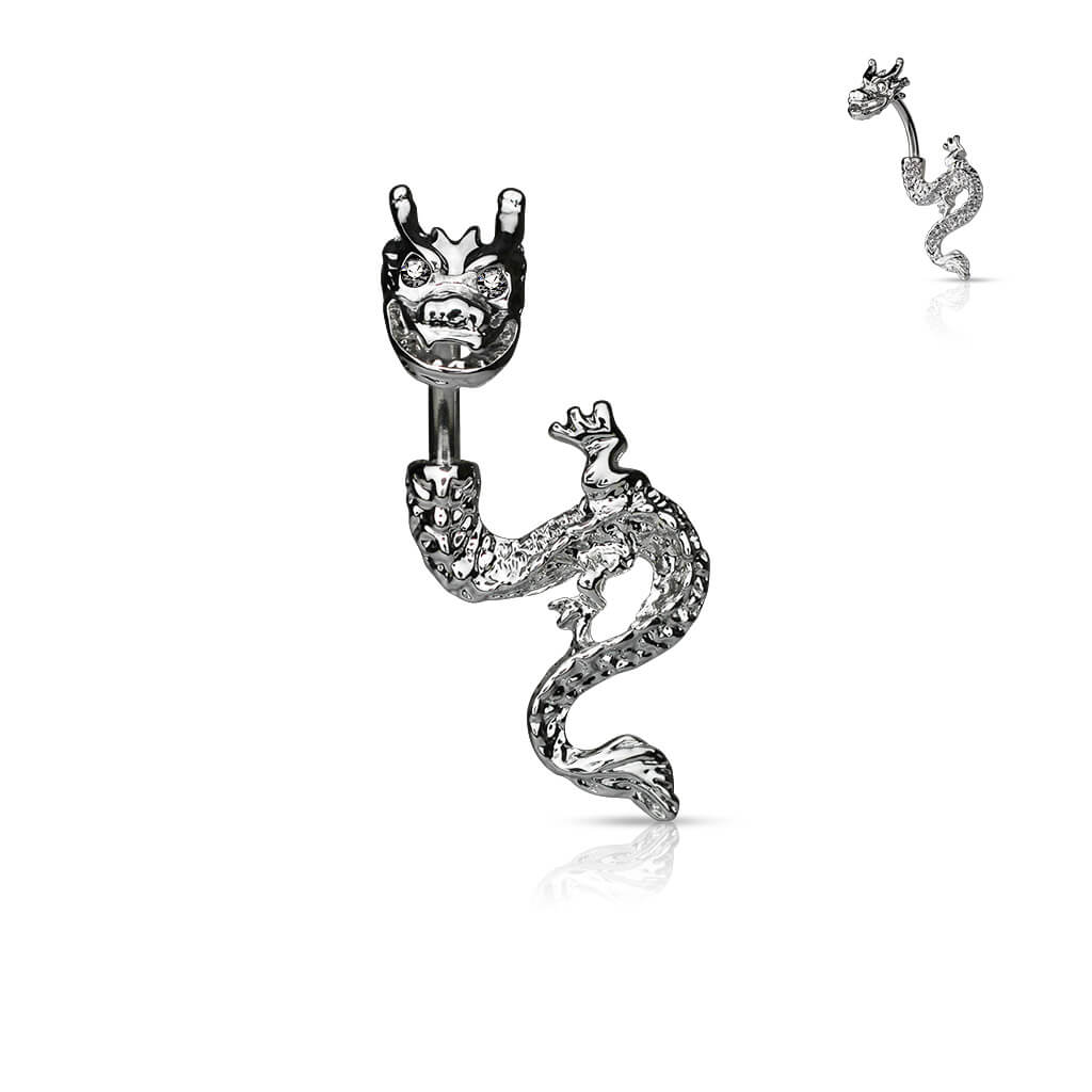 Piercing Nombril Dragon Zircone Argent