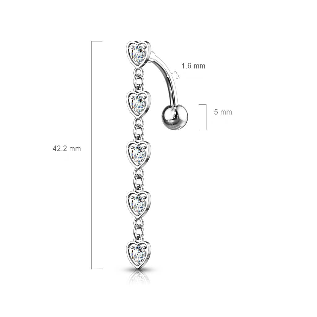 Piercing Nombril Cœur Pendentif Zircone Argent