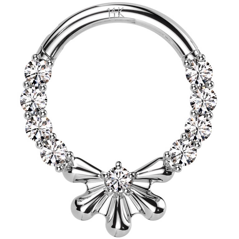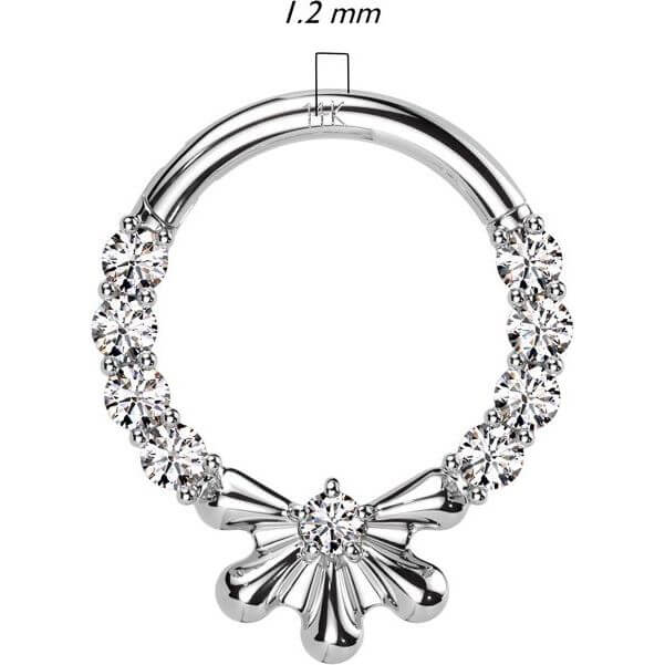 Or 14kt Anneau Demi Fleur Zircone Serti Pavé Cliqueur